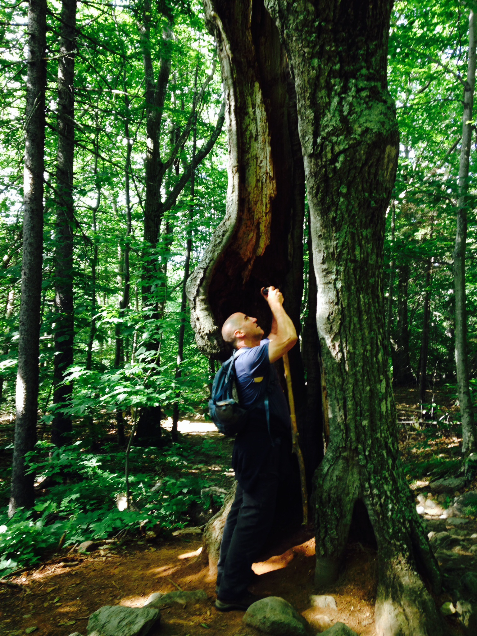 A hollowed out tree, which judging by the charred patches I suspect was struck by lightning and cooked, like microwaved hot dog, from the inside out.