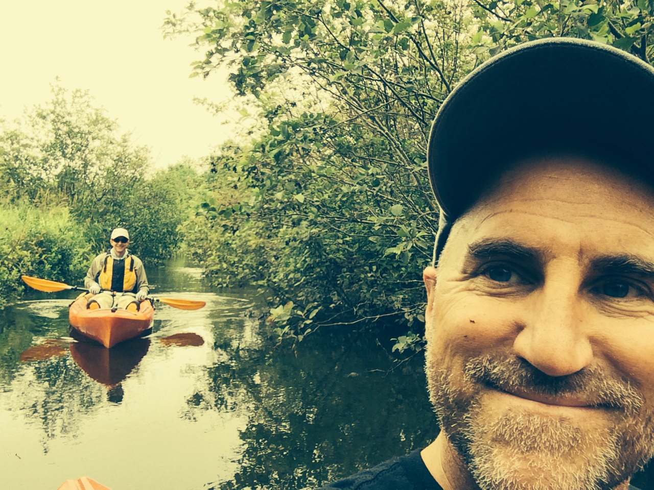 The last mile of the trip we spent racing each other like Olympic athletes vying for gold, sweat pouring down our brows, muscles pumping like a fully stoked steam train chugging down the tracks, me passing him, he passing me, yearning for the finish line. Sibling rivalry you might wonder…? No, in truth, we were really just racing a thunderstorm that was approaching with lightning and rolling thunder just over the horizon; the first drops of rain hit the windshield as we climbed into the truck. It was an awesome day – I think my brother enjoyed his birthday kayaking expedition immensely.