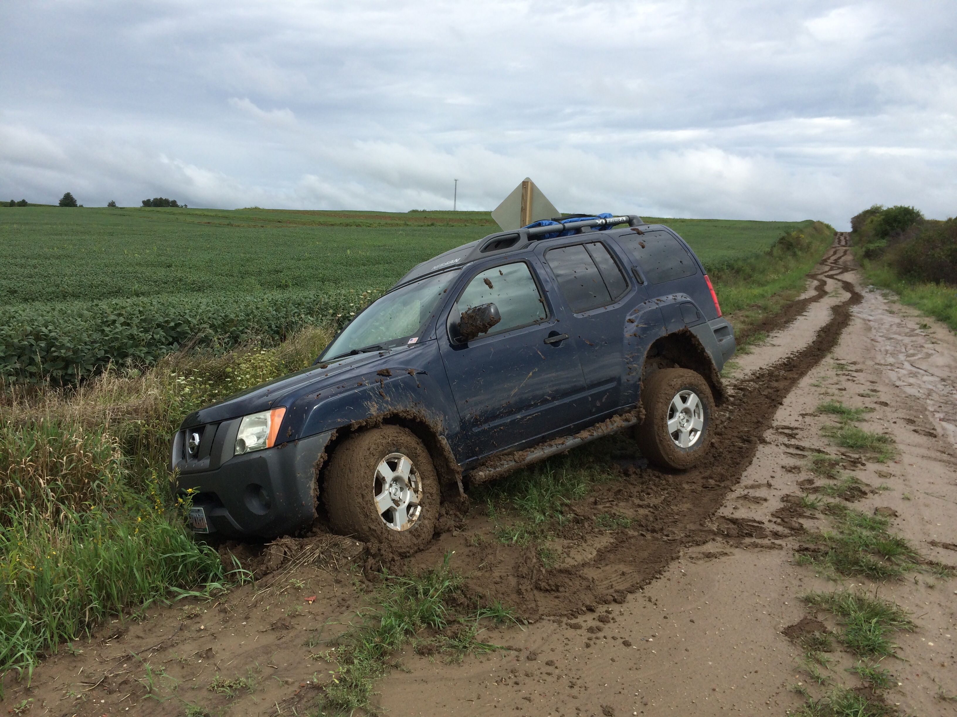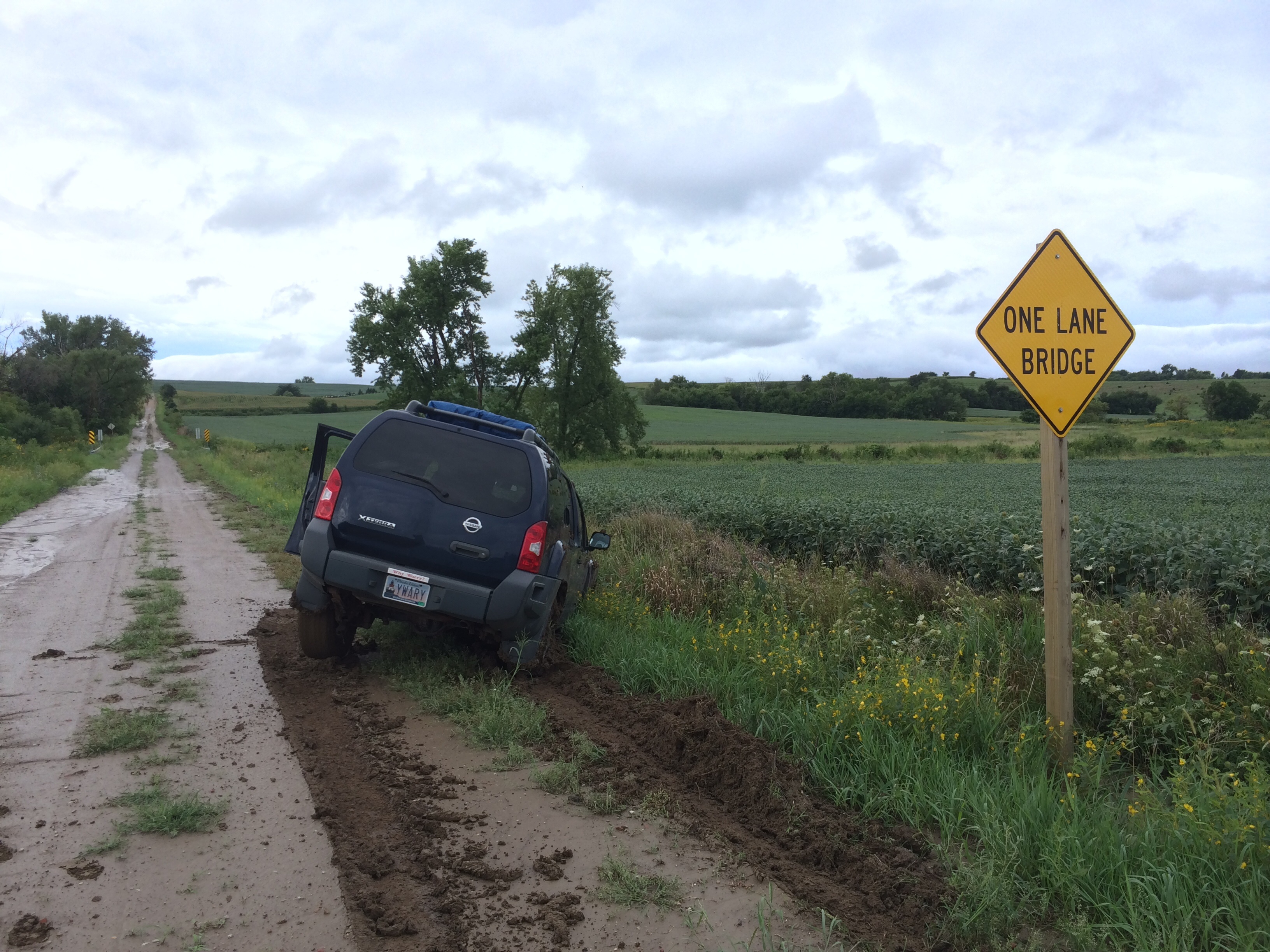 Well…there was nobody home except an old hound dog lazing on the front porch. As I stood there scratching my head, pondering my next move, a local sheriff came down the road. He said someone called him and said there was an SUV stuck in the mud over on 682nd Road. I never saw a soul…? He said there wasn’t anyone gonna come out here today in this mud to rescue me and I would be better off back in the town of Atlantic where there’s food, motels and other amenities.
