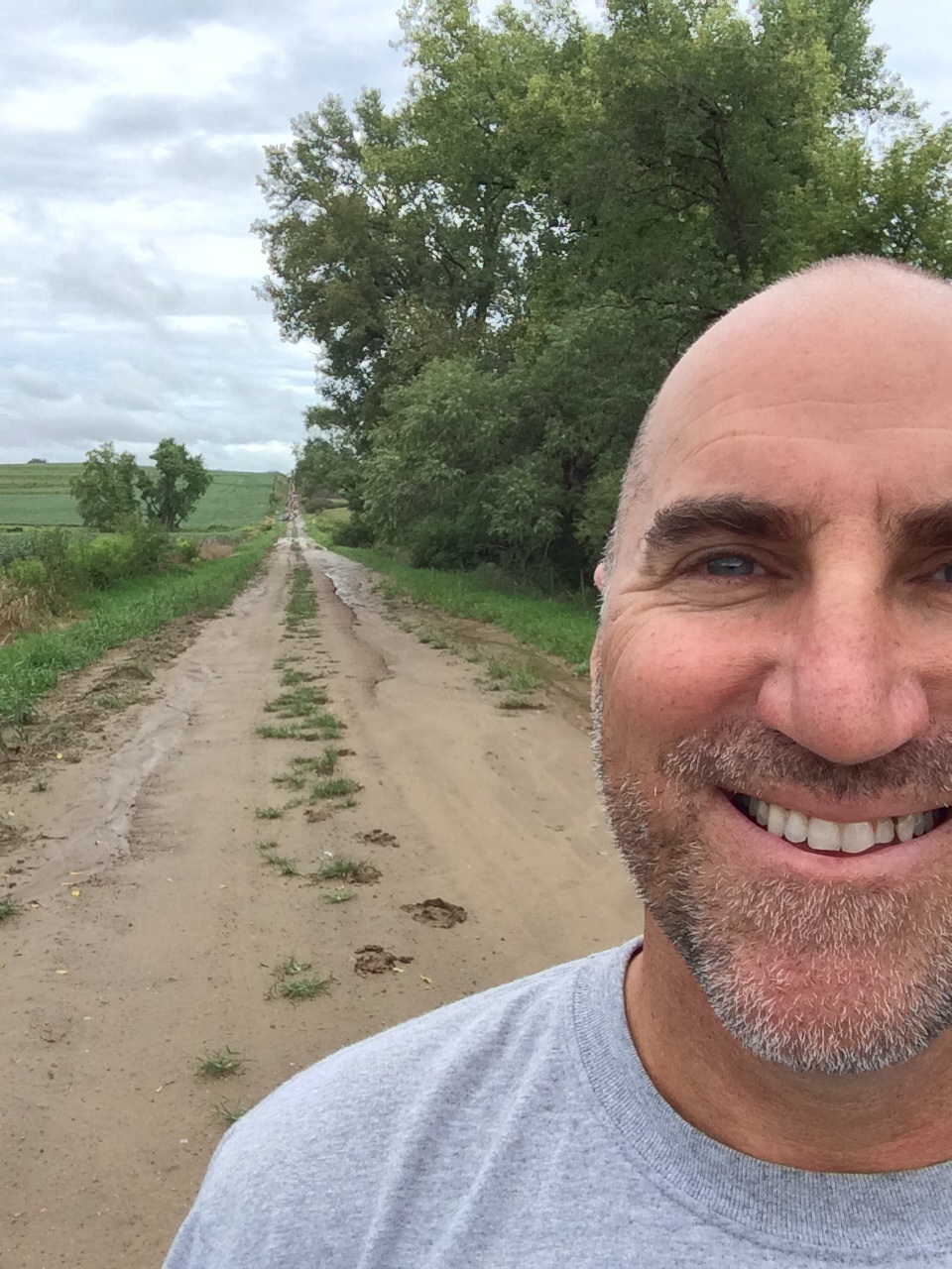 The ENTIRE road, for one country mile, was nothing but MUD! I was on a hill. I couldn’t back up. I couldn’t stop. I had no choice but to continue. Chris and Robyn have a magnet on their refrigerator with a quote on it by Winston Churchill that reads: “If you’re going through Hell, keep going.” So did. I put the truck in four-wheel drive and drove five miles an hour. It was SO slippery! It was like driving on ice! I made it three quarters of a mile, only one last hill to climb, when…image …so I just started walking…