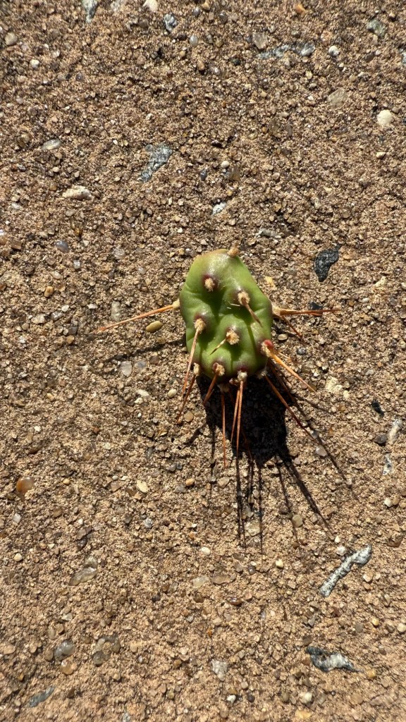 Kodi stepped off the path and had this lovely little cactus lance him with three of its spines. It’s about the size of a quarter. He was limping for the next hour after I removed the spurs but he recovered well.