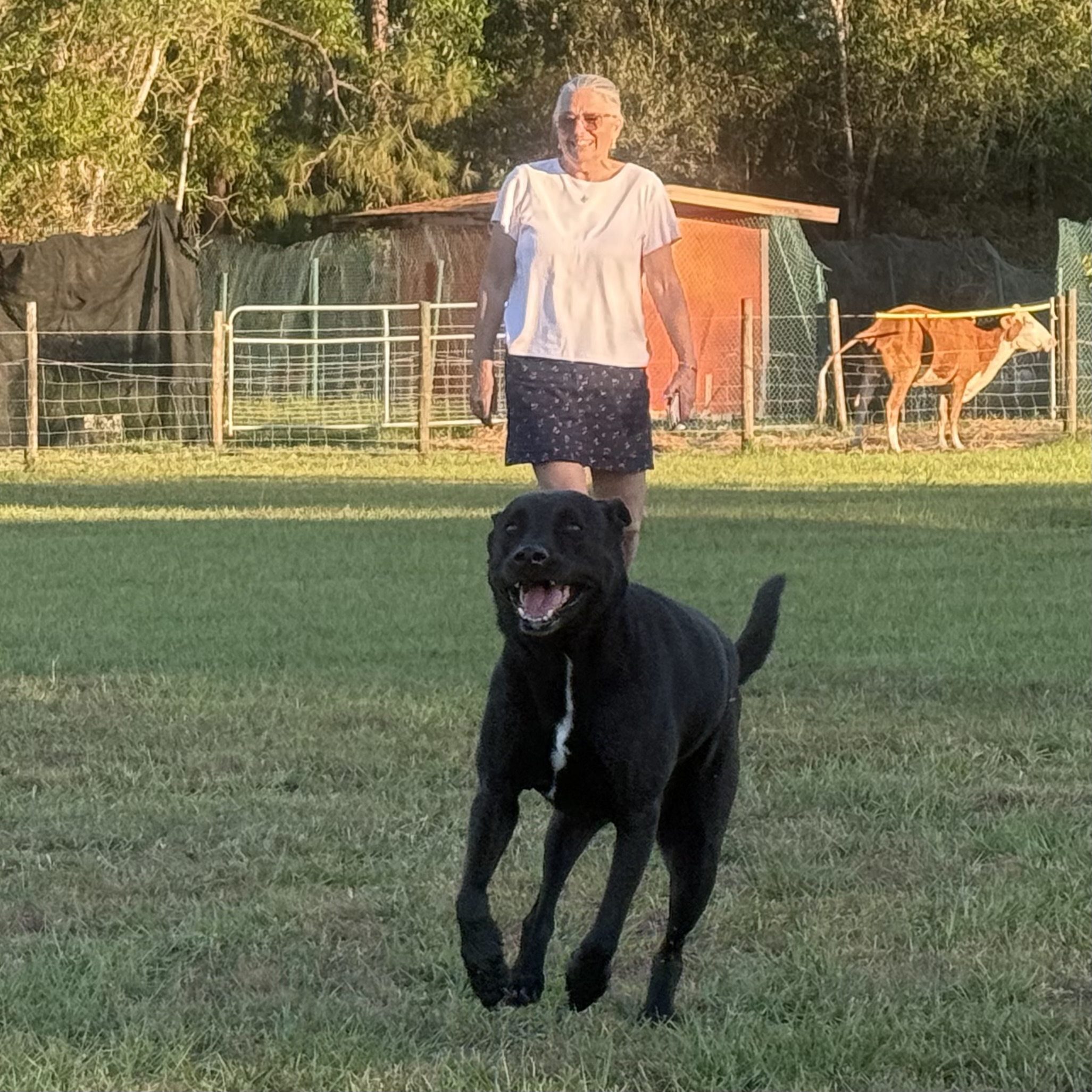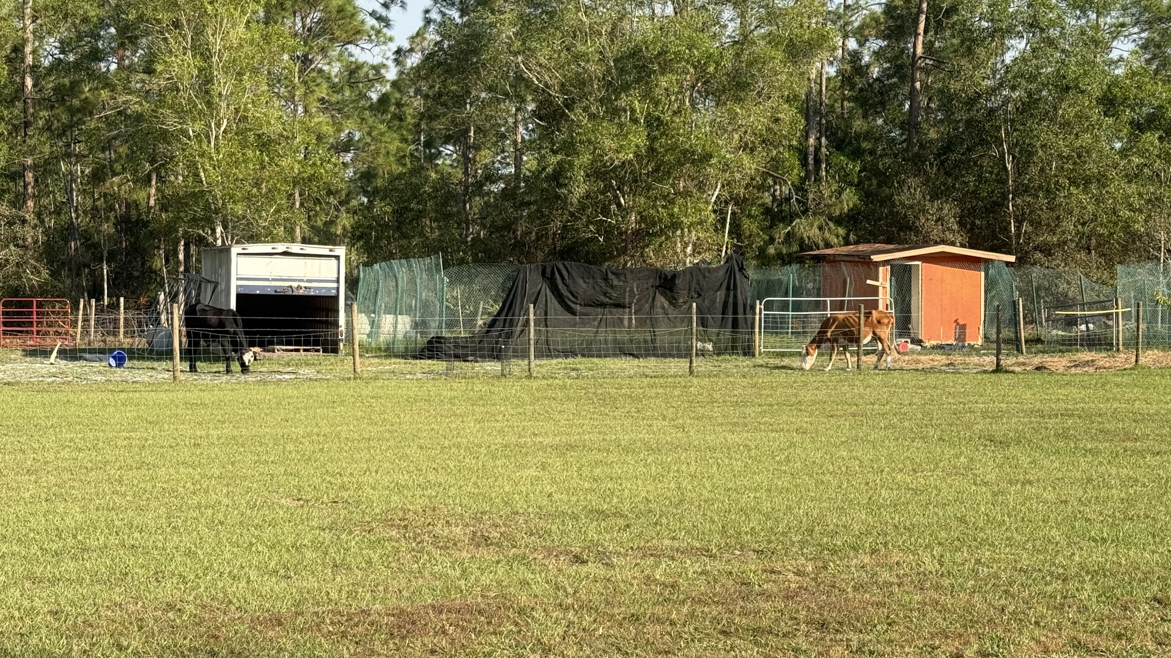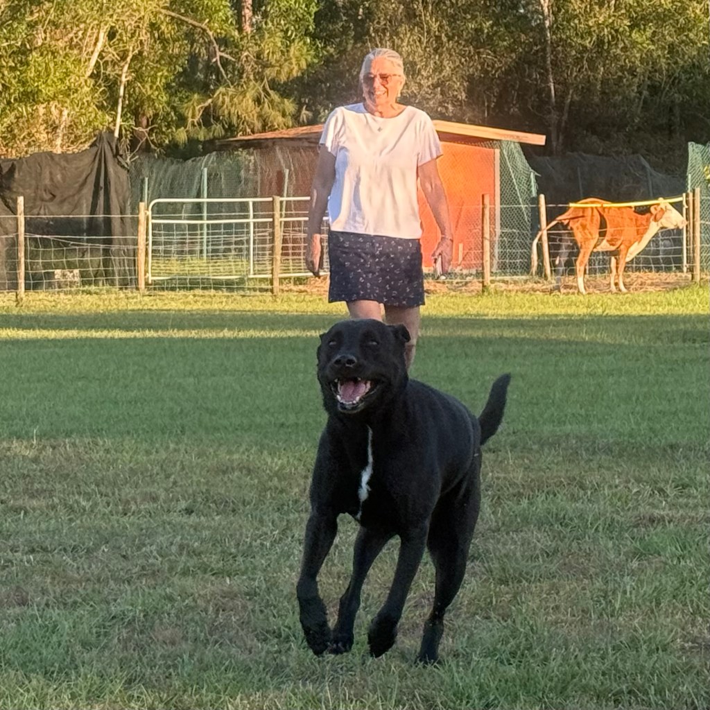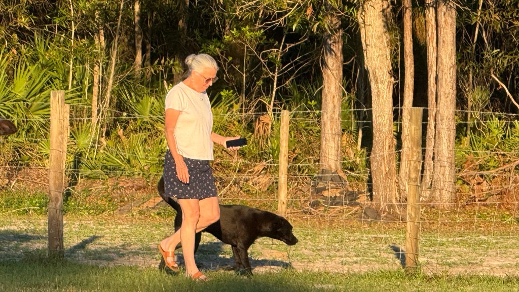 Today we’re taking a respite at a farm. The owner’s here allow you to stay for free and only ask for a small stipend if you’d like to use the water, electric and sewer hook-ups. Everything is done online so we haven’t seen any humans. We pretty much have the place to ourselves. Our only neighbors are a handful of hens and chickens, two friendly bovines (a bull and a cow), hundreds of dragonflies, and at dusk, some mosquitoes that could pick you up and fly you away like the flying monkeys in the Wizard of Oz! Kodi loves all the space and freedom to run.