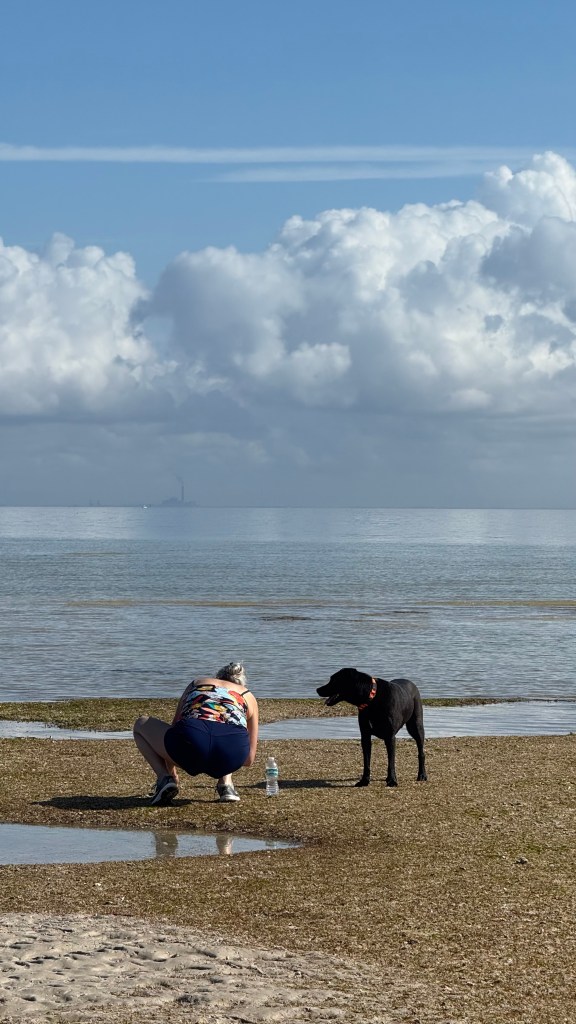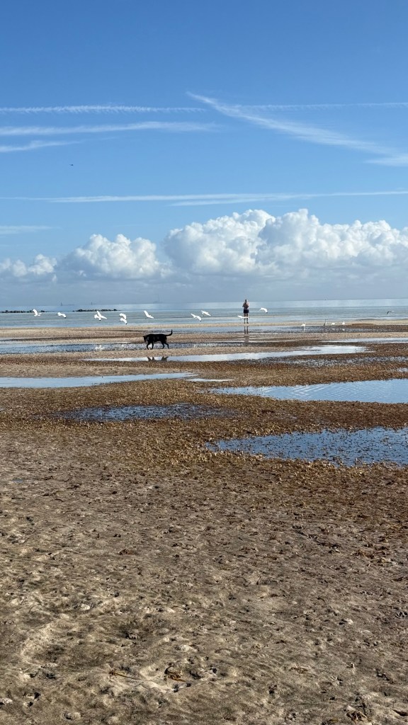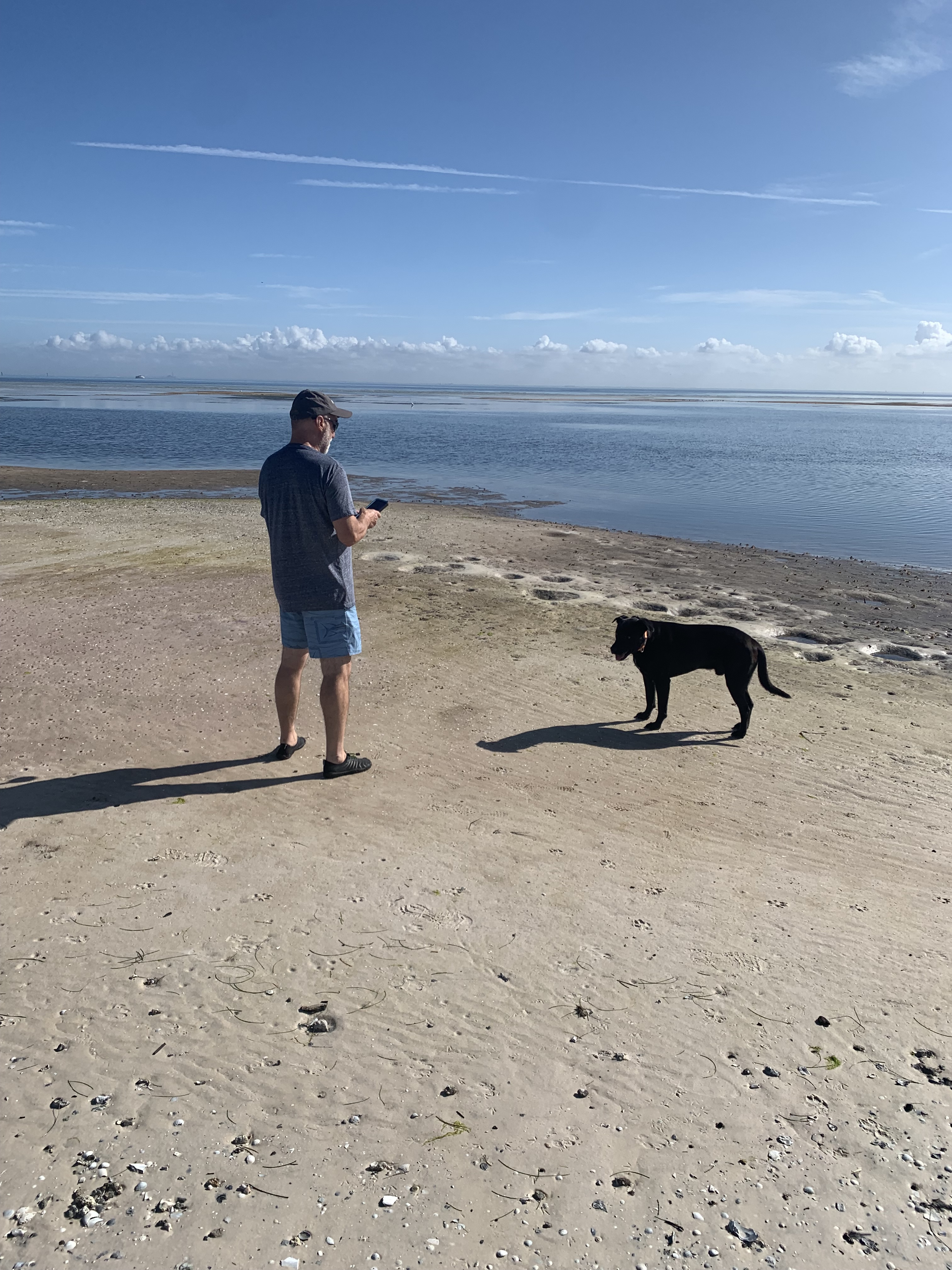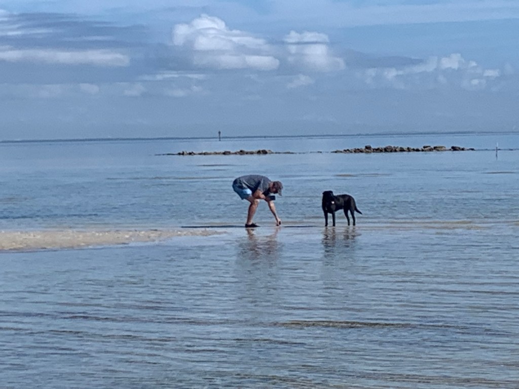 One pleasant morning was spent at Lassing Park frolicking in the low tide and beachcoming amongst the seashells, egrets and crawling crabs. Treva wandered along the beach photographing what was while Kodi and I walked out on the shoals. I was exercising my own photography skills while Kodi ran like a mad dog across sandbars and shallows doing the “zoomies.” We three each enjoyed the day in our own way…