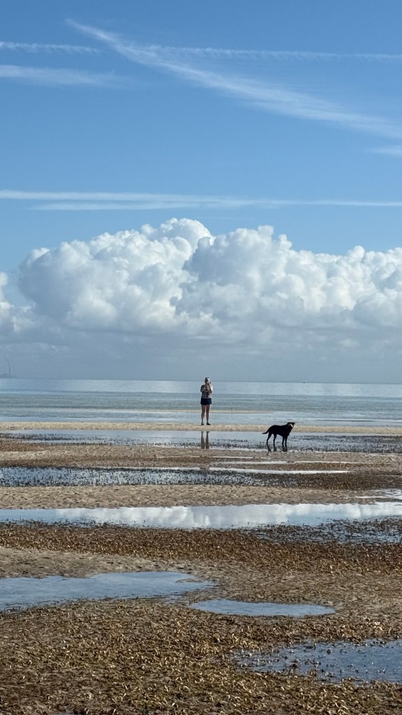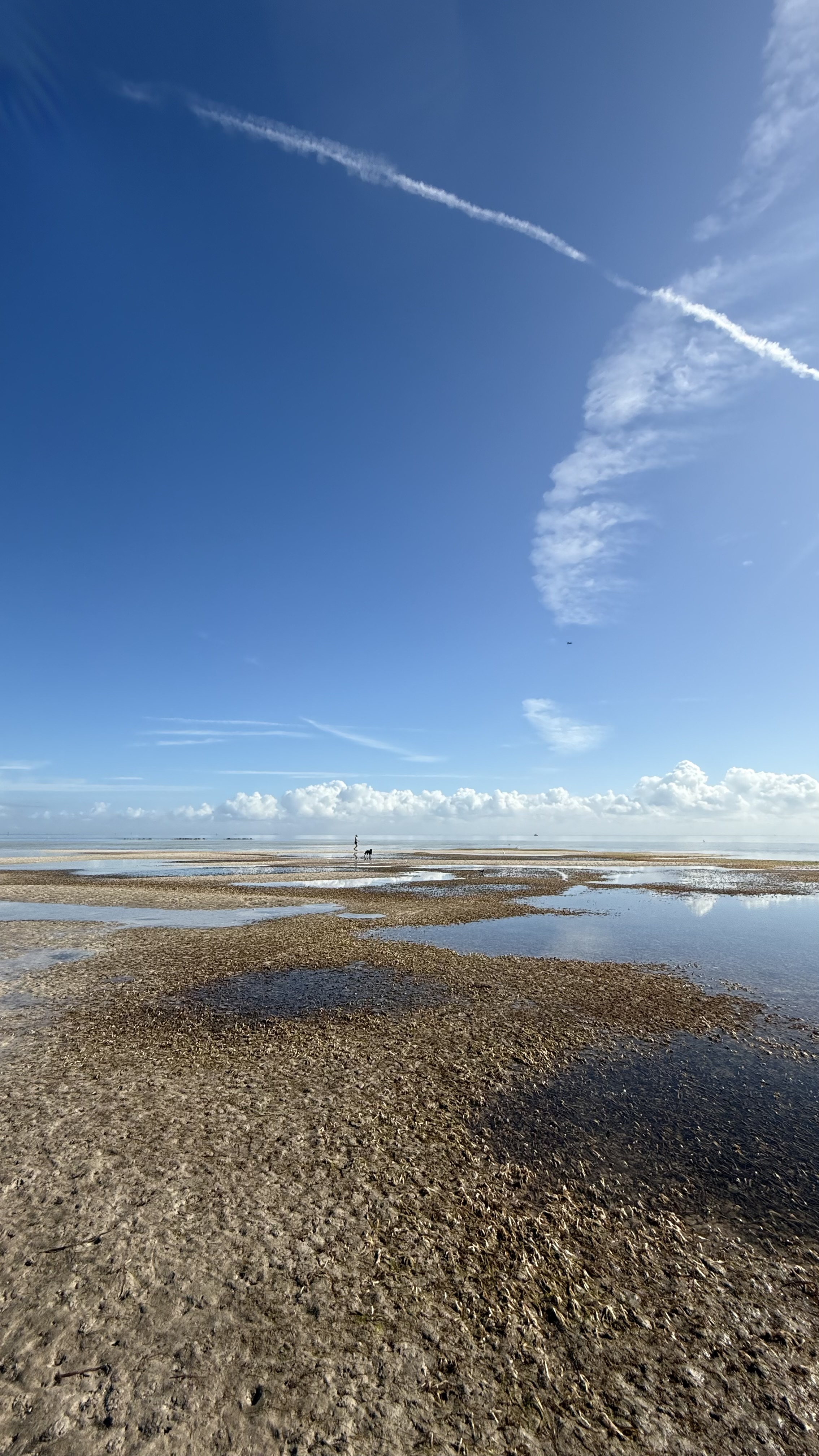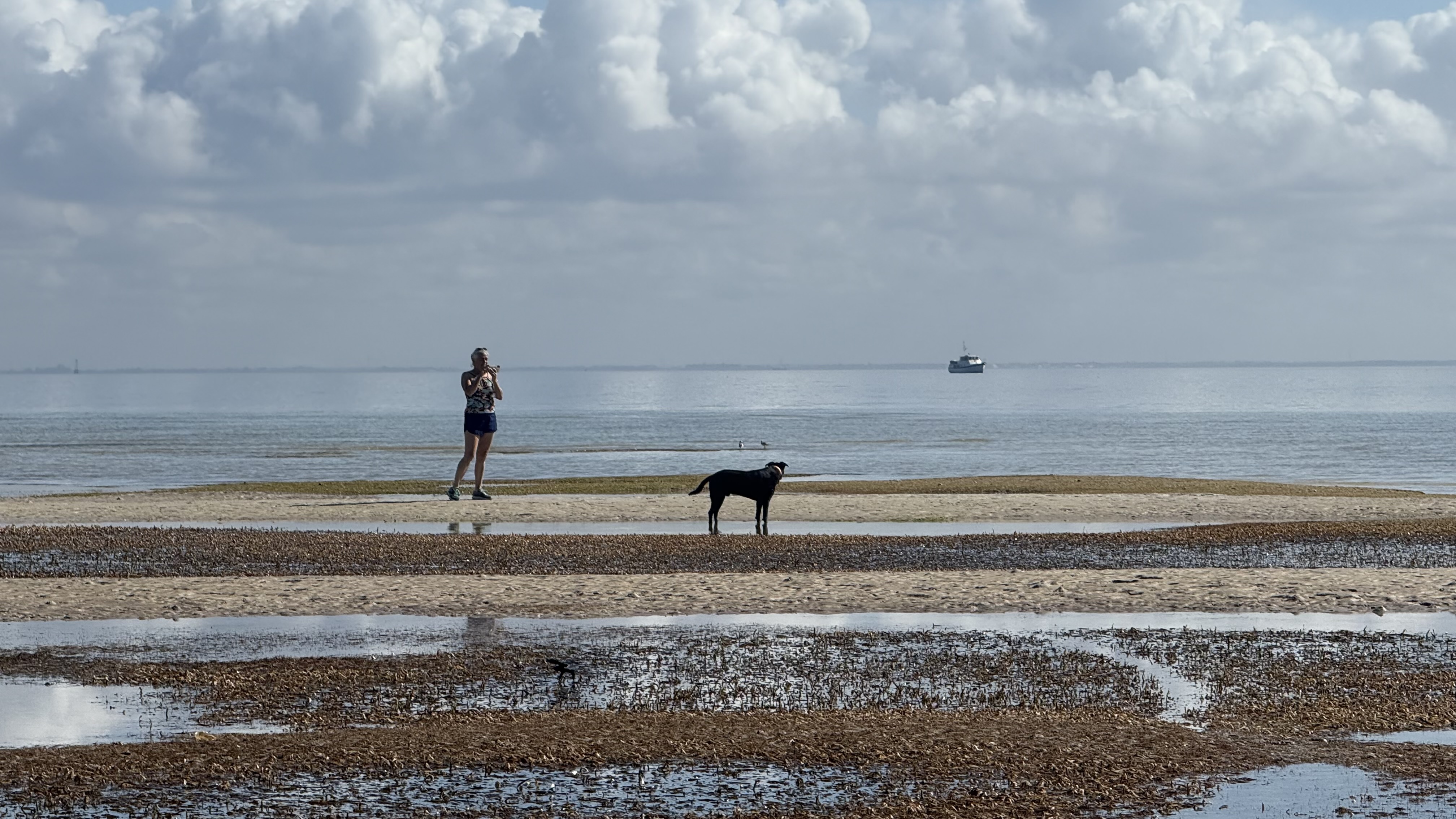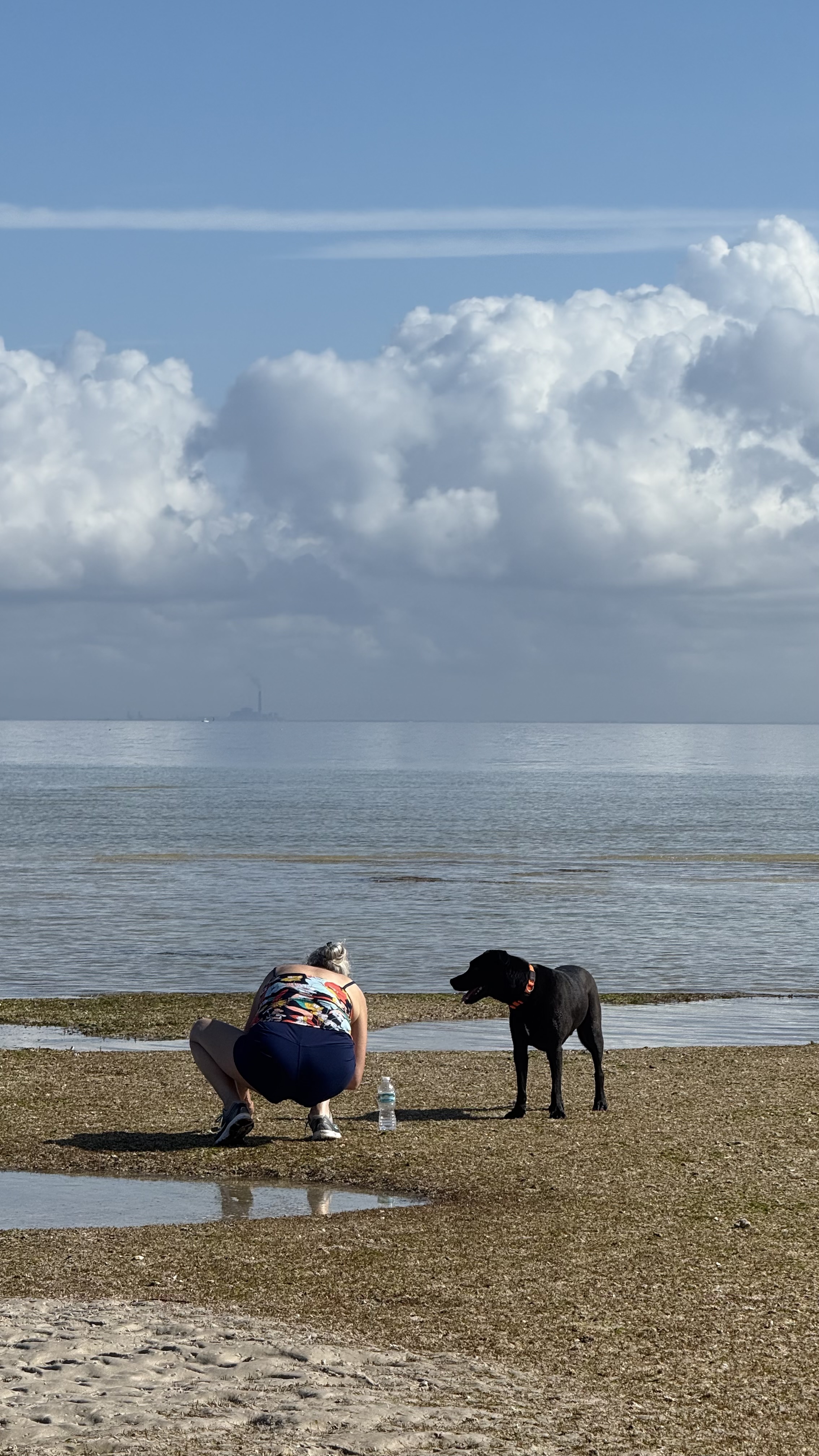 One pleasant morning was spent at Lassing Park frolicking in the low tide and beachcoming amongst the seashells, egrets and crawling crabs. Treva wandered along the beach photographing what was while Kodi and I walked out on the shoals. I was exercising my own photography skills while Kodi ran like a mad dog across sandbars and shallows doing the “zoomies.” We three each enjoyed the day in our own way…