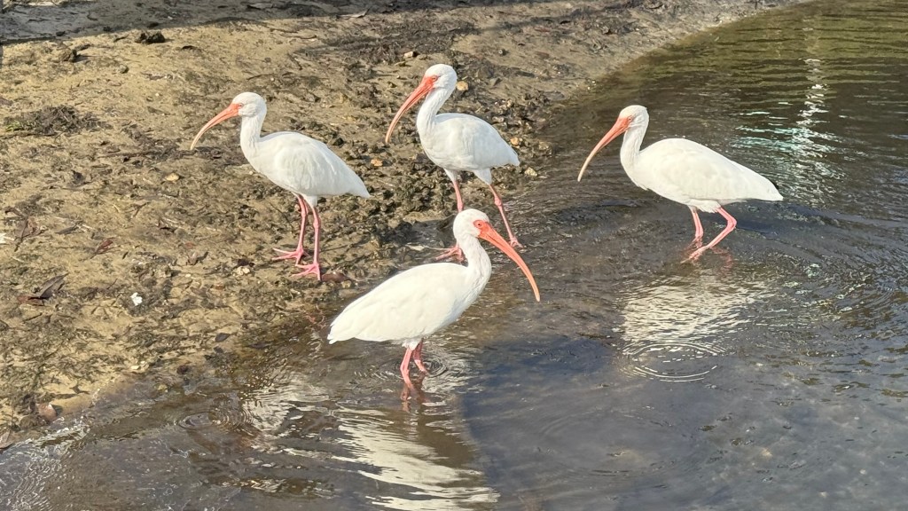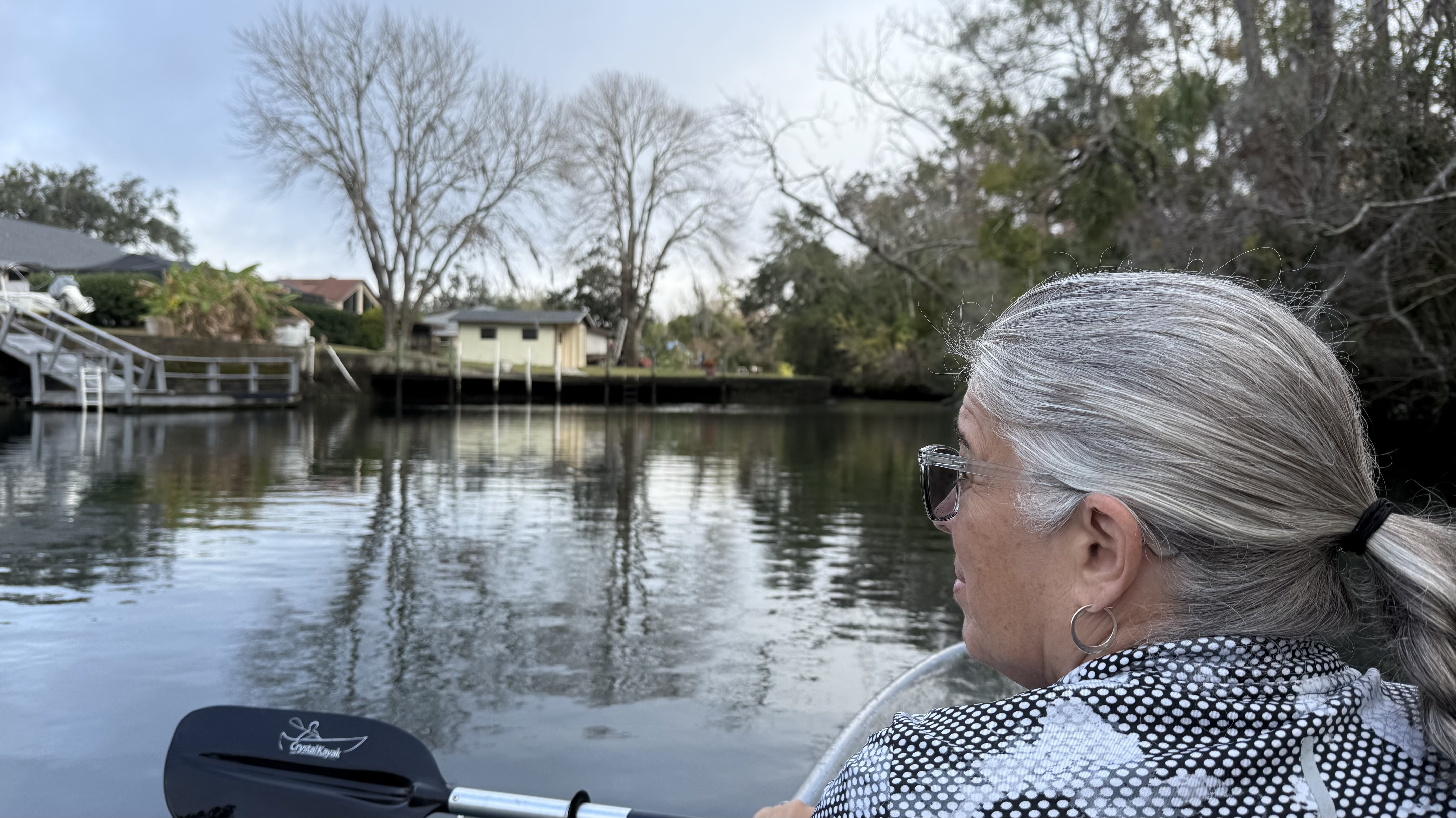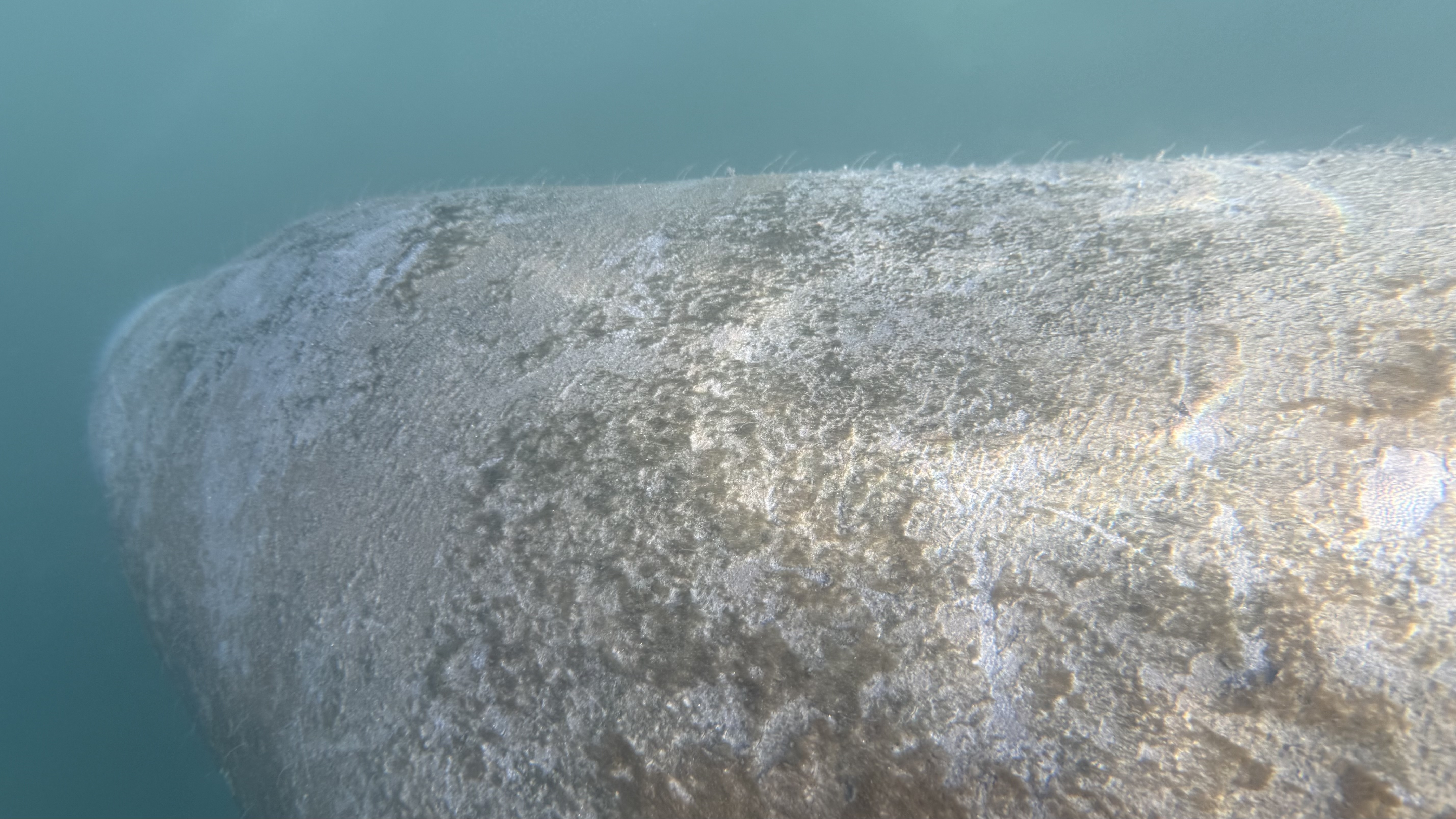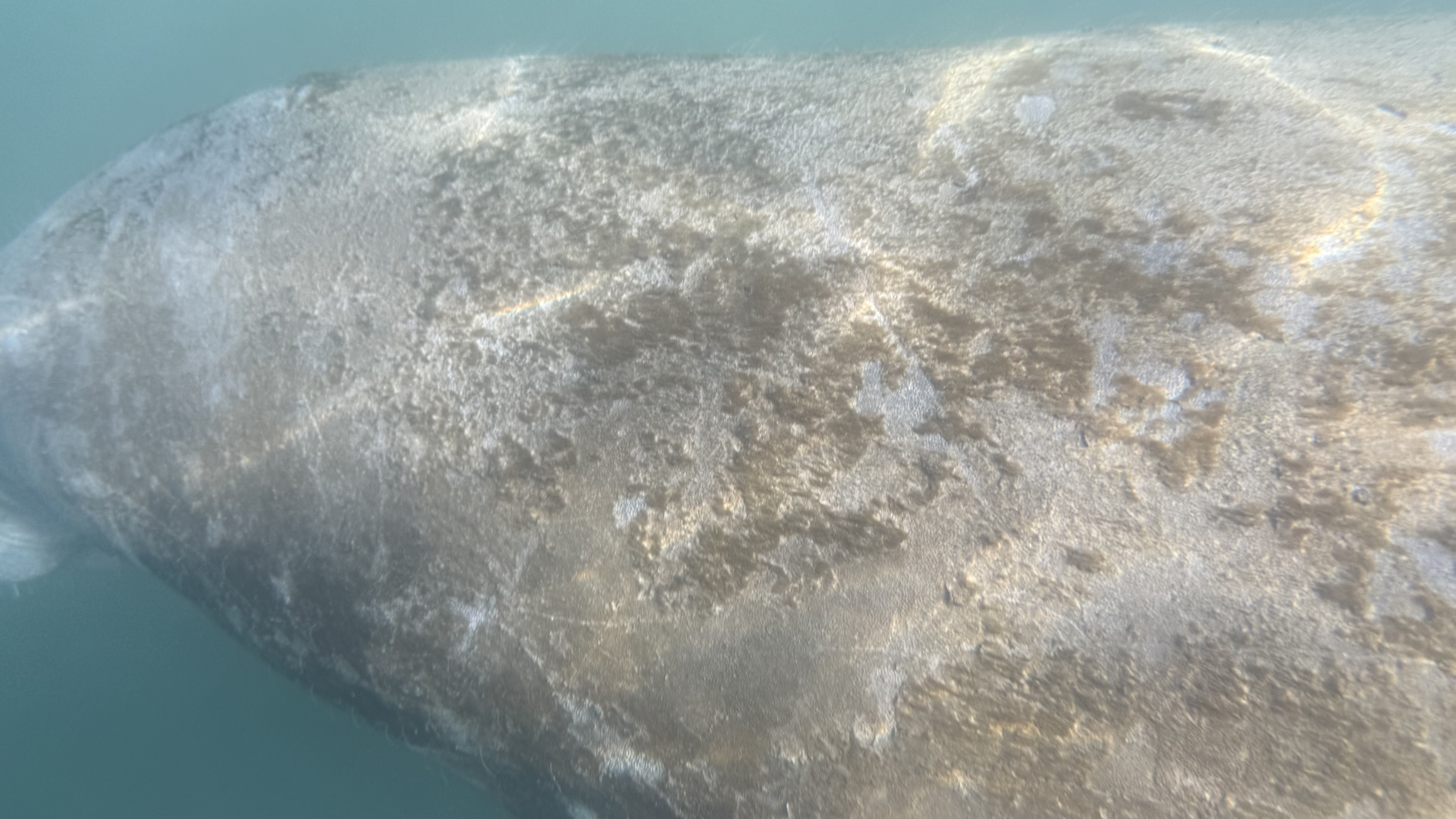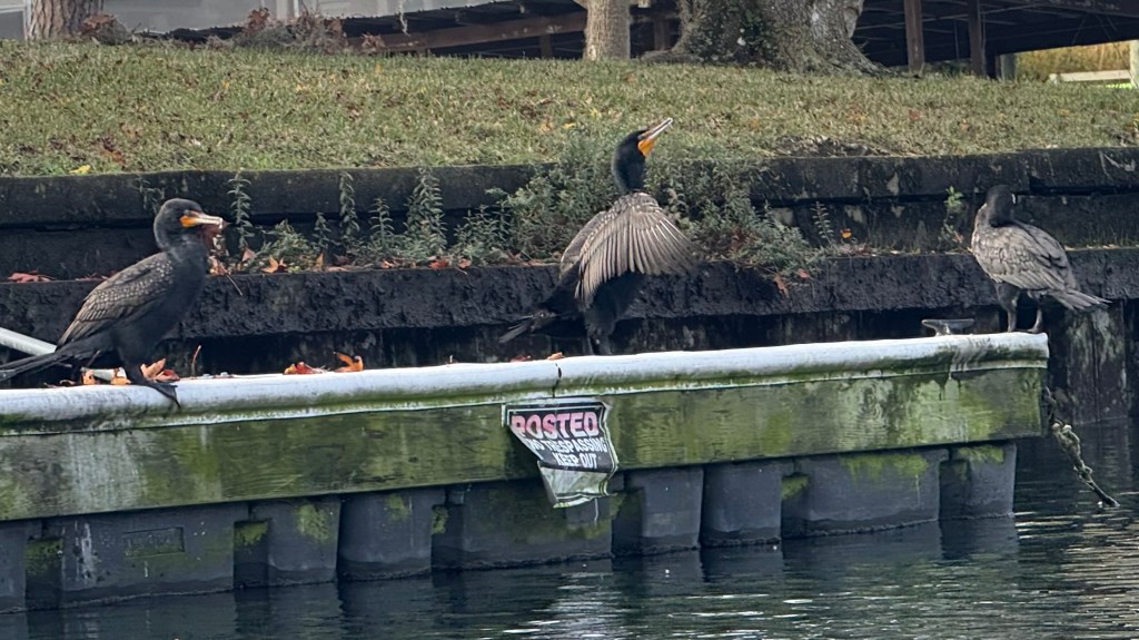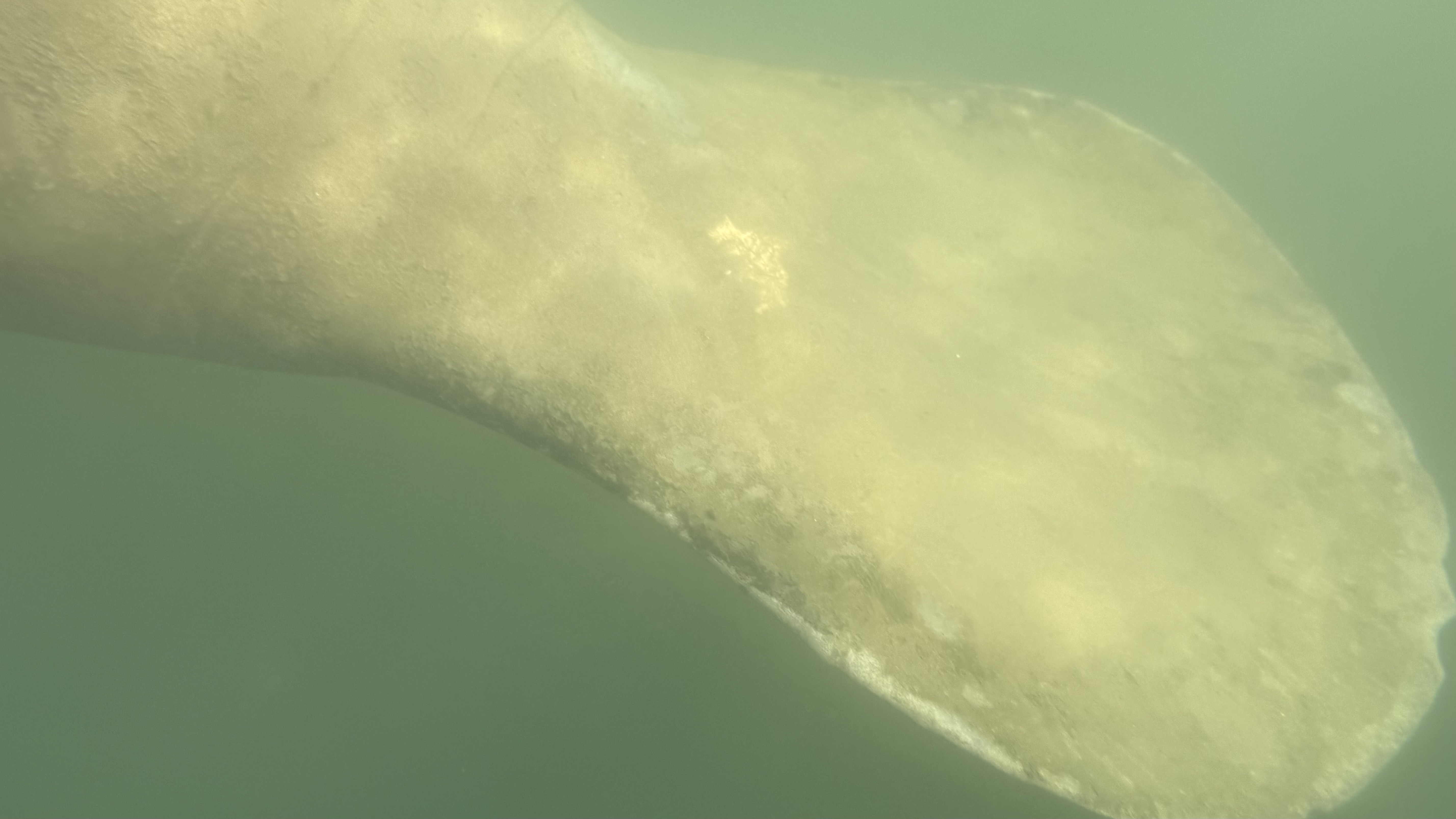 One Christmas gift that Treva gave me was a Clear Kayak Manatee Eco Tour in the town of Crystal River, Florida. An hour north of our domicile, we drove there the morning of New Year’s Eve. It was a little breezy and a little chilly on the open water, but once we paddled upstream the conditions were pleasant. We glided around on the water, checking out the scenery and the wildlife, for an hour or two. We saw turtles drying in the sun, some egrets frolicking at water’s edge, and cormorants surfacing here and there. The manatees that were underwater were a challenge to see because of the reflection of the cloudy skies. We started rowing back to our starting point, feeling a little disappointed, when…we were joined by this big female manatee! We know she was female because they grow larger than the male manatees. She had quite a few scars on her backside, which I suspect were from boaters. She glided along with us for about fifteen minutes, swimming along side us or going under our transparent kayaks. (Tapping on a picture will allow you to scroll through that group of pictures in greater detail.)