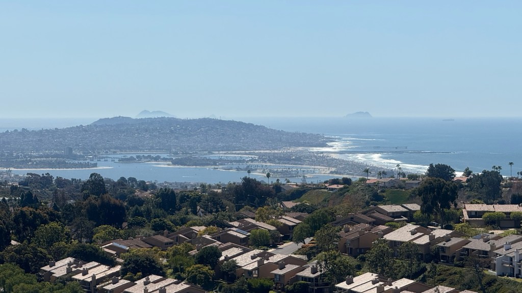 Mt. Soledad is a National Veterans Memorial that sits atop this peak and has a 360° view of most of San Diego County. In the following pictures you can see the far Pacific horizon to the west with Hawaii only three thousand miles away, all the way up to the snow-covered peaks to the north, the eastern lands that lead up into the mountains and beyond to the desert, and to the south, where laid out before you is Mission Bay, the beaches, Coronado, the city-skyline of San Diego and, on the far southern horizon, the country of Mexico.