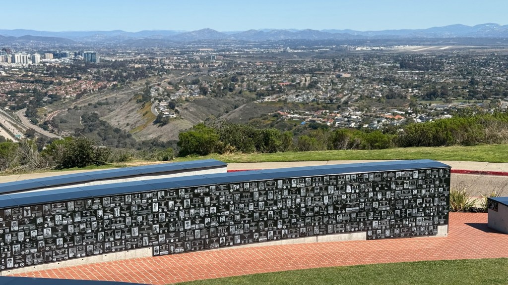 Mt. Soledad National Veterans Memorial was created to honor and recognize the thousands of military men and women who sacrificed for this country. It is considered one of the most unique veterans memorials in America in that it is the only memorial that honors veterans, living or deceased, from the Revolutionary War through to the current war on terror. As you can see by the pictures they have their image and military accomplishments etched in black marble. This solemn place was created in 1954 and has doubled the number of honorees in just the last five years from three thousand to six thousand veterans with more being added daily. It is truly a special place for its spectacular views and its awe inspiring tribute to those who heard the call of duty for this great country. 🇺🇸