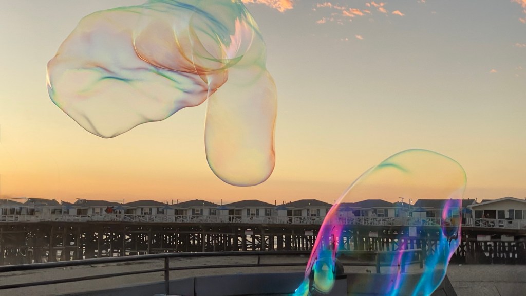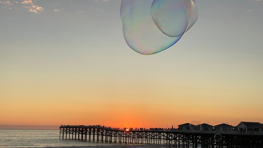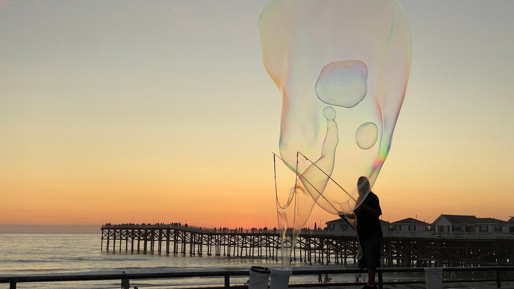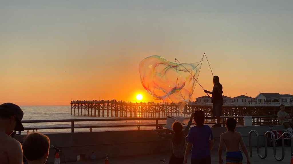 Once in a while, this guy goes down to the Pacific Beach boardwalk to entertain the masses at sunset by creating monstrous ethereal bubbles…