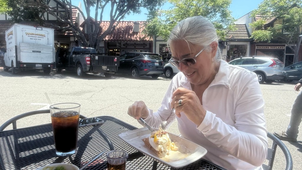 …and that was on our first visit! We enjoyed Solvang so much we returned a week later for more pictures, more shopping for touristy baubles and, of course, another helping of Banana Split Waffles! 🇩🇰