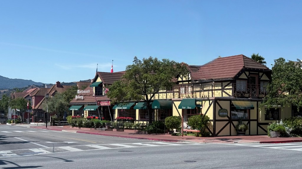 Solvang, founded in 1911, was established by a group of Danish-American immigrants who purchased 9,000 acres of land in the Santa Ynez Valley. Their mission was to preserve and promote Danish culture, leading to the creation of this settlement called “Solvang,” which means “sunny field” in Danish. Initially, the town focused on farming and maintaining Danish traditions, but it later evolved into this popular tourist destination. The town really became popular after the movie “Sideways” was filmed here. 🇩🇰