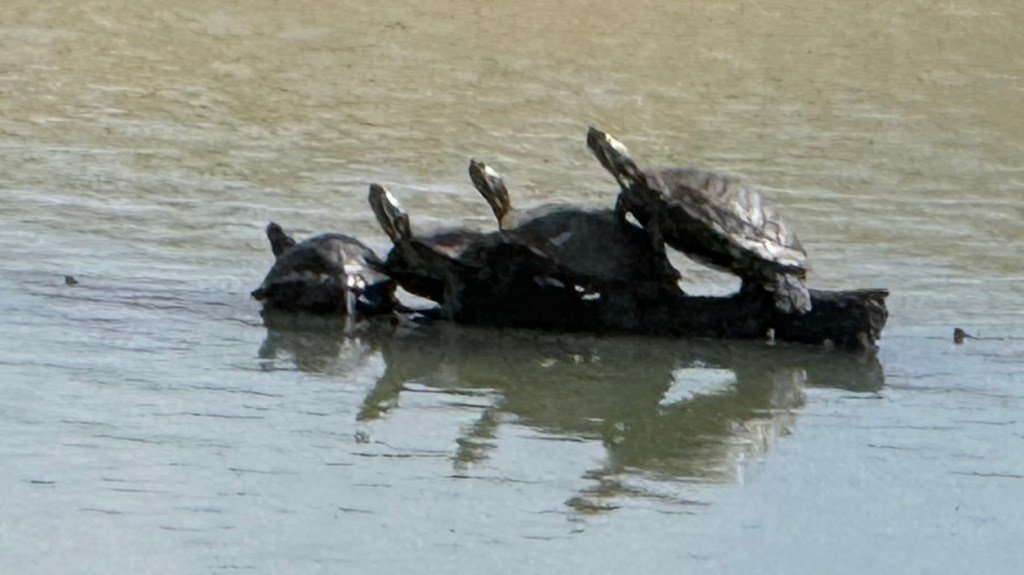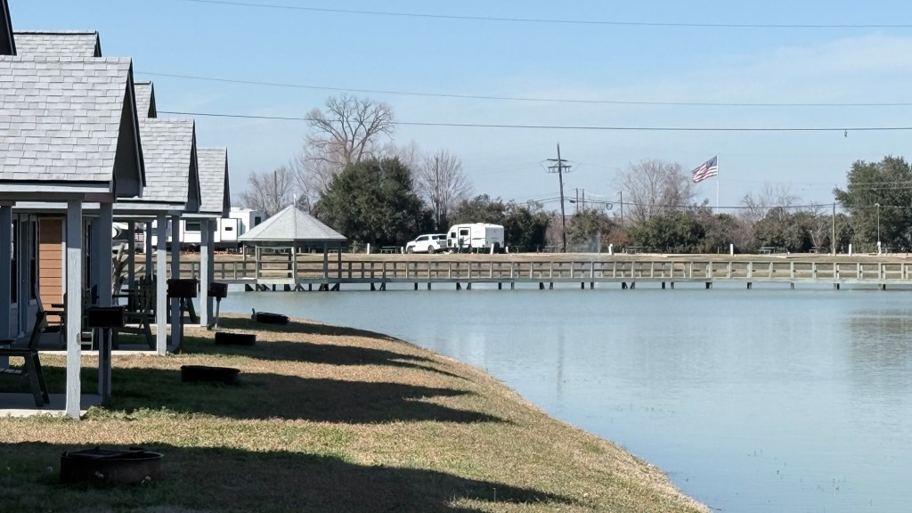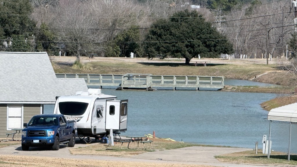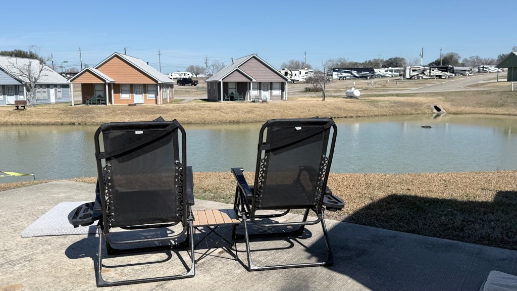 We set up our bunks at a KOA in Montgomery, Texas, the birthplace of the Texas flag. We had a site right next to the lake. We liked the peace and serenity of it so much that we booked an extra night! Plus I needed a good rest after driving for a week and Treva had the extra day to visit with her friend, Treva Jo. Kodi just laid his old bones in the warm sun the whole time. ☀️